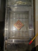 白钢房门,带玻璃花格,中间有福字装饰,高两米三宽是八十公分厚是7.5公分门框完整,玻璃干净,适合家用。梅河口西街